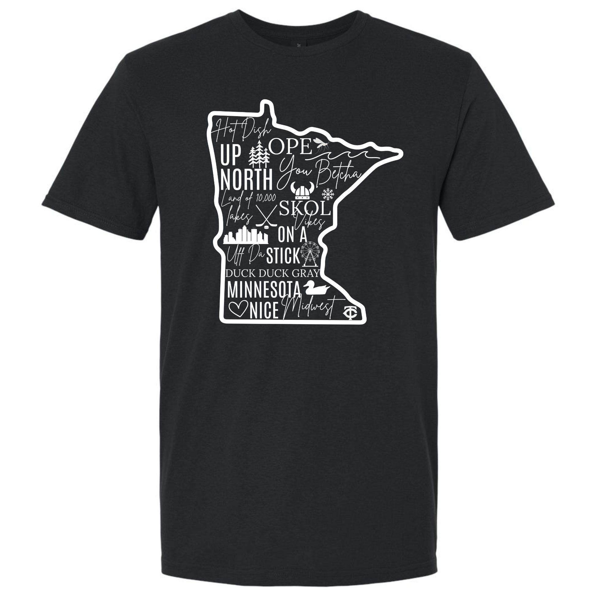 MINNESOTA WORDS ON A BLACK SOFTSTYLE T-SHIRT